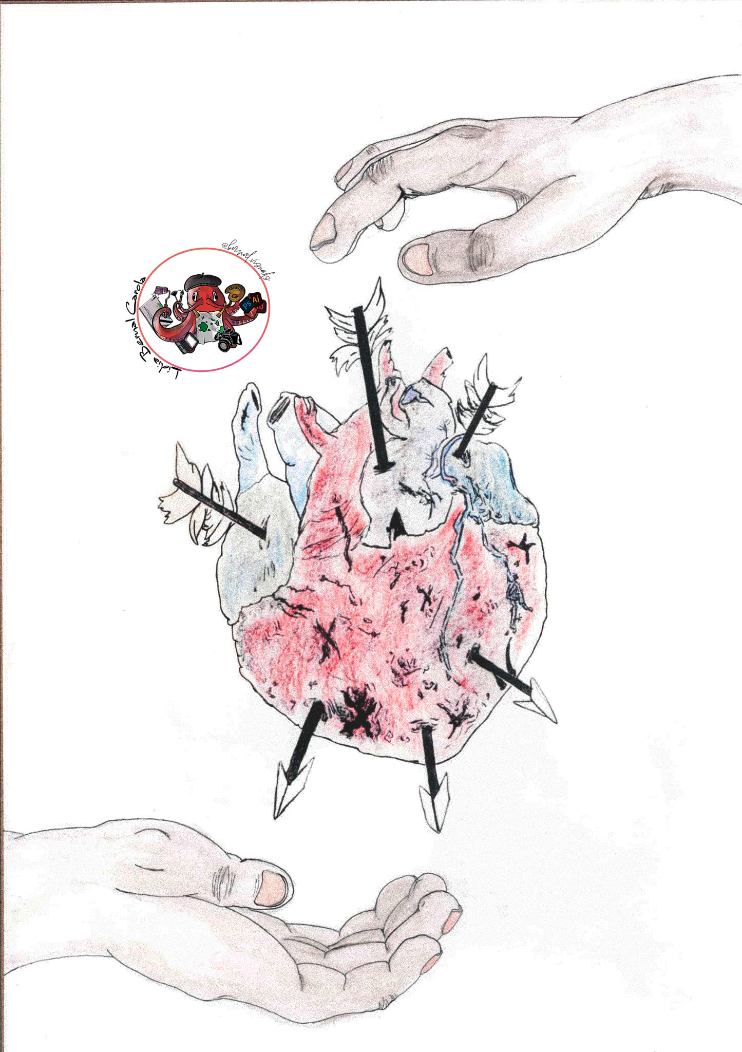 Jo vaig dibuixar les il·lustracions, en la primera il·lustració i el meu tatuatge, revertint el mític quadre de Michelangelo amb les mans gairebé tocant-se en l'obra de la creació d'Adan.